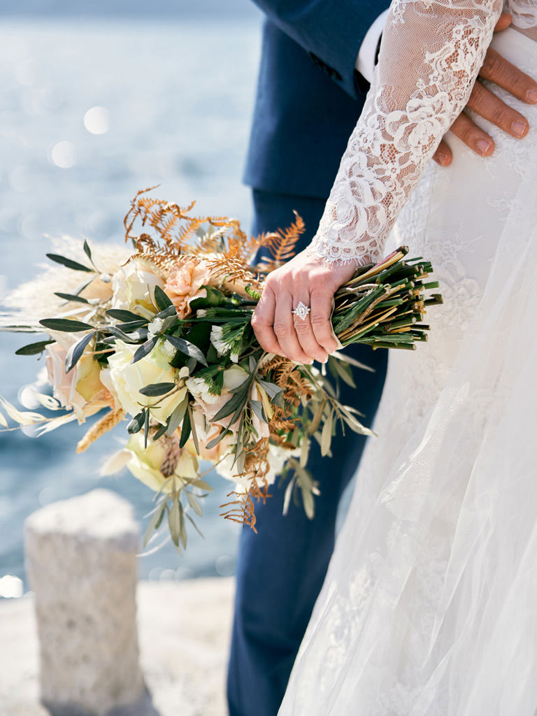Camera arredata in stile classico dotata di balcone con vista sul mare.