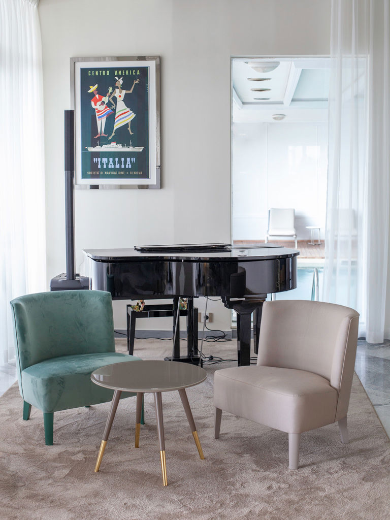 Ouvert de l’après-midi jusqu’à tard dans la soirée, l’American Bar propose une large sélection de vins, cocktails et boissons mixées, préparés et servis avec un professionnalisme soigné par le barman Marco Cortiana.